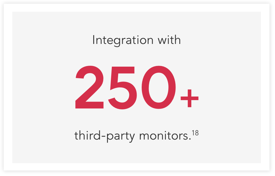 Outre le portefeuille complet de dispositifs Masimo, Masimo SET® est également intégré dans plus de 250 moniteurs tiers d'autres grands fabricants d'équipements de surveillance de patients, pour faciliter le travail des cliniciens.18