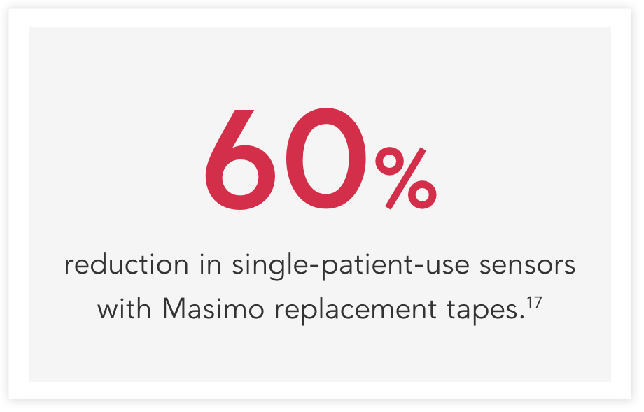 Masimo permet un « retraitement au chevet » à l'aide de bandes de remplacement, ce qui maximise la durée de vie du capteur. Cela permet aux cliniciens de continuer à utiliser les principaux composants d'un capteur en ne remplaçant que les composants adhésifs en cas de besoin.17