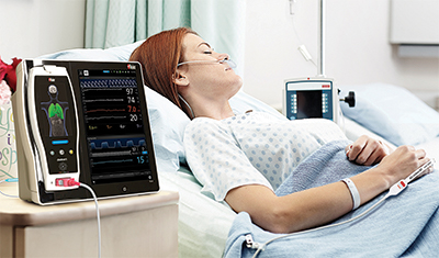 Artemis care areas will be equipped with bedside monitoring devices such as the Radius-7® Pulse CO-Oximeter®, a Bluetooth- and WiFi-enabled wearable, tetherless monitor used in conjunction with the Root® Patient Monitoring and Connectivity Platform, as well as Rad-97™, Masimo’s most recent bedside pulse CO-oximeter. These devices feature SET® Measure-through Motion and Low Perfusion™ pulse oximetry technology to measure oxygen saturation, pulse rate, and perfusion index for all patients, with fewer of the false alarms3 that have made monitoring patients in less nurse-intensive areas impractical. A subset of patients will also be monitored using SpHb®, a Masimo rainbow® parameter that measures hemoglobin, continuously and noninvasively. Each floor will also use a cart-mounted Root with Noninvasive Integrated Blood Pressure and Temperature monitor to provide periodic spot-checking of vital signs and input for automated Early Warning Scores, built into Root. Patient data from all of these devices, in addition to being relayed to Patient SafetyNet, will be automatically integrated with the hospital’s electronic medical record (EMR) and hospital information system (HIS).