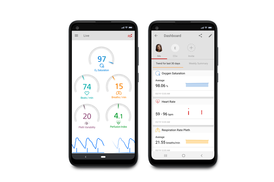 Het horloge wordt gekoppeld aan de Masimo SafetyNet-app, die gegevens doorstuurt naar een beveiligd artsenportaal op internet waar zorgverleners de gegevens en trends live kunnen volgen.