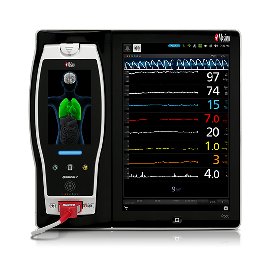 Powered by Masimo SET® Measure-through Motion and Low Perfusion™ pulse oximetry, with upgradeable rainbow® technology, Radical-7 combines bedside, handheld, and transport monitoring in one versatile device.